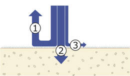 Die Versickerungsleistung des anstehenden Bodens muss ausreichen. Hierzu kann ein einfacher Bodentest {2.4.3_2} auf dem Grundstück durchgeführt werden. Für größere Projekte und mehr Planungssicherheit ist ein Bodengutachten erforderlich.